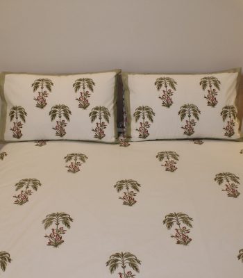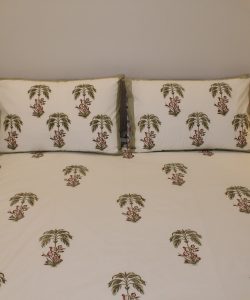 Housse de couette 2 places + 2 taies – Imprimé blockprint floral Aashraf Vert, percale de coton.