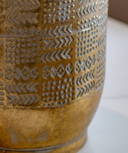 Ajoutez une touche exotique et artisanale à votre décoration avec ce cache pot en métal martelé , orné d'un élégant motif flèches et points gravés à la main . Chaque pièce est unique, réalisée par des artisans indiens au savoir-faire ancestral.