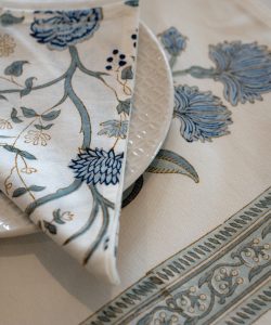 Apportez une touche chaleureuse et raffinée à votre table avec ce set de table indien en coton imprimé à la main en blockprint . Chaque pièce, fabriquée artisanalement selon un savoir-faire ancestral, présente des motifs uniques qui racontent une histoire.