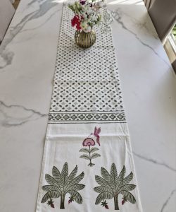 Chemin de table en coton– 34cm×182 cm, imprimé au blockprint fait main