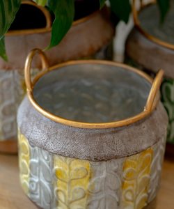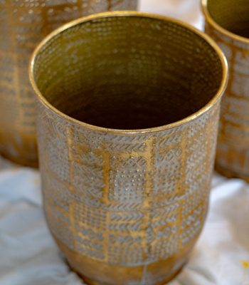 Cache pot Flèches/Points, en métal martelé, moyen modèle