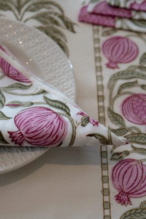 Set de table Blockprint Anar-e-Shirin avec serviette x6