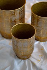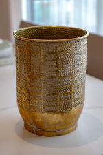 Apportez une touche d’exotisme et de sophistication à votre intérieur avec ce cache-pot décoratif en métal martelé, orné d’un élégant motif flèches/points. Fabriqué à la main par des artisans indiens, il séduit par son design raffiné et ses finitions soignées.