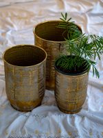 Cache-pot décoratif motif flèches/points – Petit modèle en métal martelé | Artisanat indien